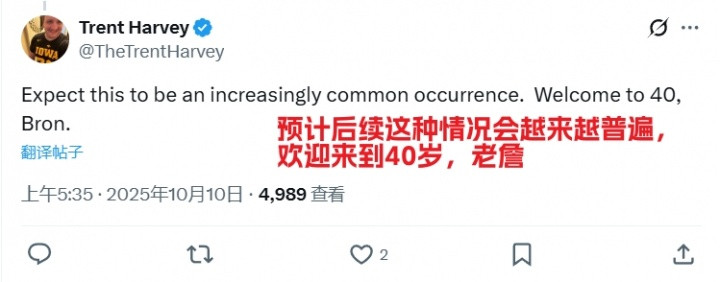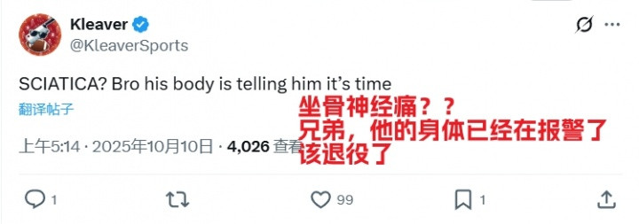 名记Shams报道,詹姆斯因右侧坐骨神经痛将伤缺3-4周,缺席25-26赛季常规赛开局阶段比赛。