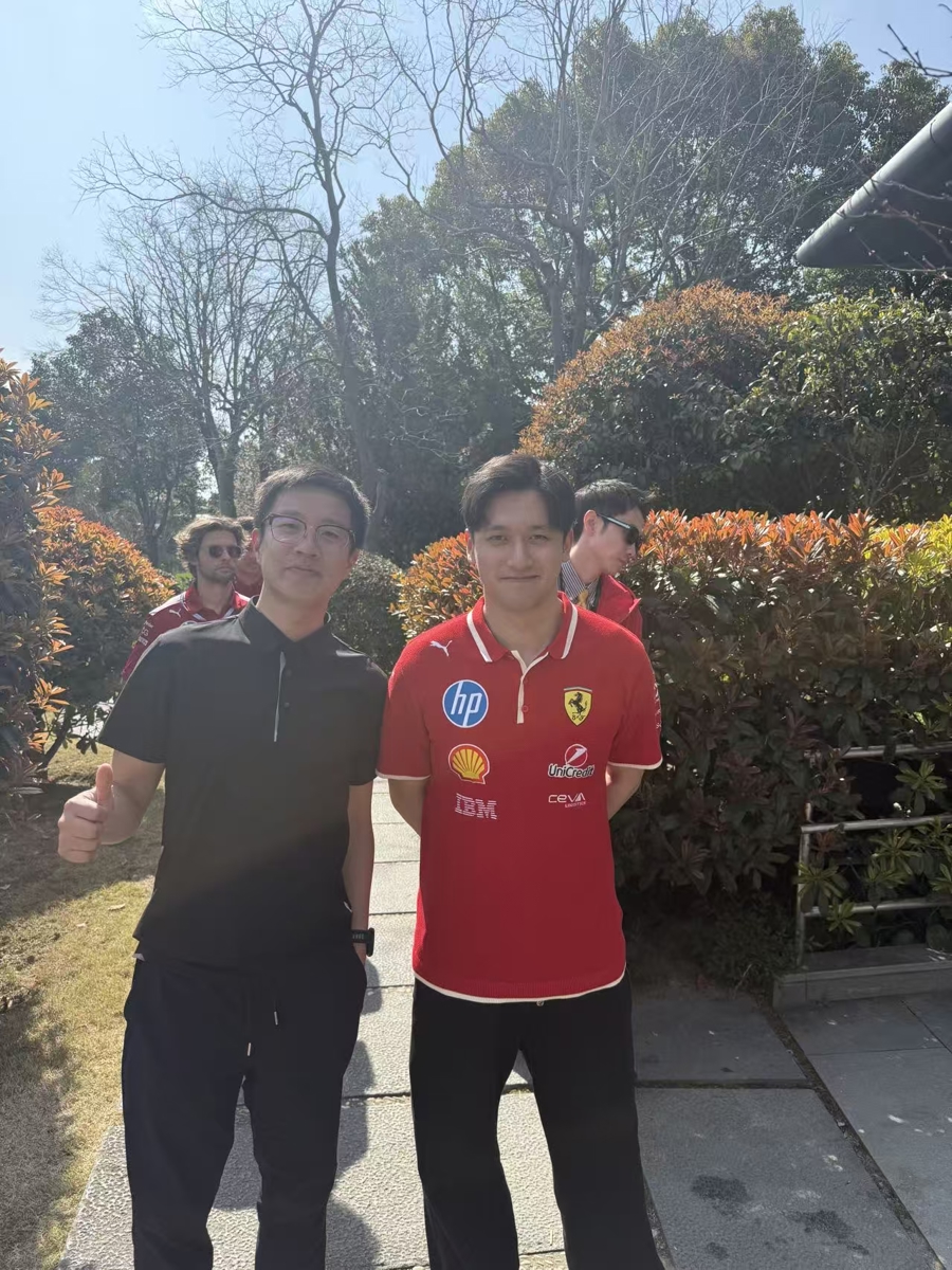 费翔与中国历史上首位F1正式车手周冠宇合影。 受访者供图